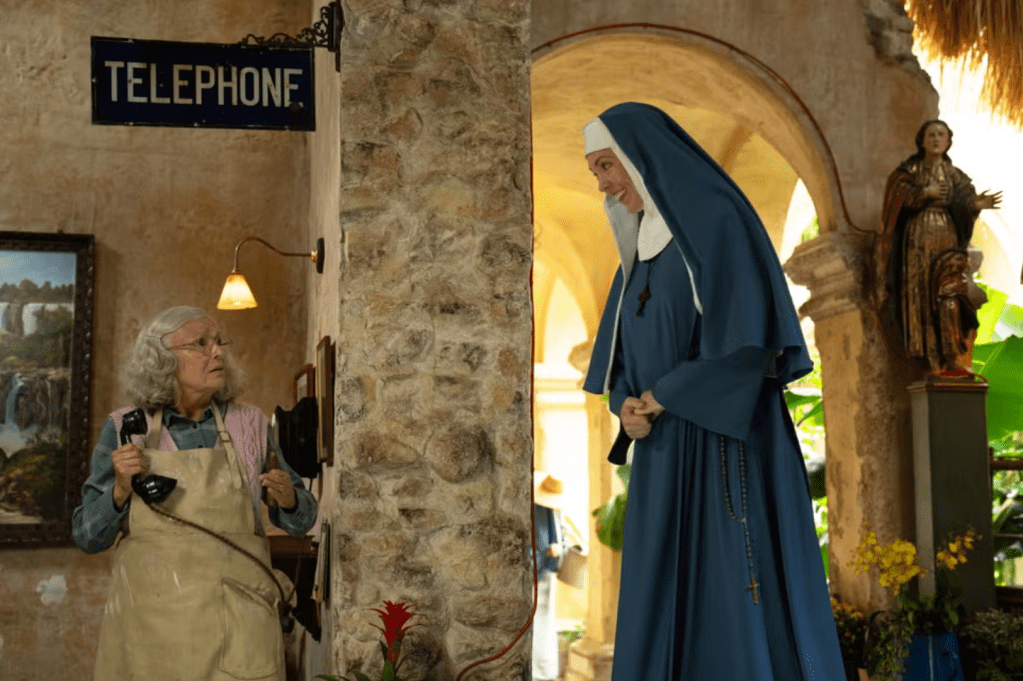 Along with a lot of the returning faces, we also have plenty of new players thrown into the mix and to say they sometimes steal the show is an understatement. Olivia Colman always a welcome presence and here she is fantastic as the Reverend Mother, a playing up the properness of the character, but also making it so that there may be more to her than meets the eyes. She also gets an opportunity to show off her singing chops which was wonderful. The real standout for me though, was Antonio Banderas as Hunter Cabot, the boat captain, whose obsession with gold gets the better of him. Banderas is an actor who can do comedy very well as he tends to just go out and deliver more than what he is offered, playing up the absurdity of the situation and this is no different. He is having an absolute blast chewing the scenery and making Cabot into a shockingly well rounded character whose funny, but Banderas does a great job conveying the tragedy that he is going through with his gold obsession. He is also the center of one of the best running gags of the film where we see him interact with his ancestors through hallucinations which was wonderful (seeing more than one Banderas was a treat. I also felt Carla Tous did a solid job as Gia, having some really nice interactions with Banderas that get across the complicated relationship nicely. We also get various appearances from characters across the franchise which was nice (there’s one especially that I got a kick out of… just stay for the credits is all I’ll say).