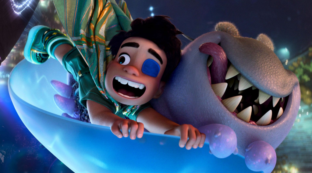 This being an animated film made at Pixar, it is less than a surprise that it would end up being visually stunning, but that doesn’t make it any less impressive. The animation is of course absolutely stunning, bringing to life the far reaches of the cosmos in a way that is a treat for the eyes to behold. The Communiverse itself is an imaginative kaleidoscope of colors that always has something interesting lurking behind the corner. The lightning is especially well utilized in not only here, where it furthers the sense of wonder present, but also in scenes set on Earth where things are a bit gloomier for Elio and in Lord Grigon’s ship which serves to intimidate those who enter. The backgrounds in general are extremely detailed and succeed in being both realistic on the scenes set on Earth as well as fantastical in the parts in space. Also adding to the visual imagination on display are the designs of the various aliens, which are very fun to look at, with there being so many and makes the scope of this world feel big with not one being looking the same.