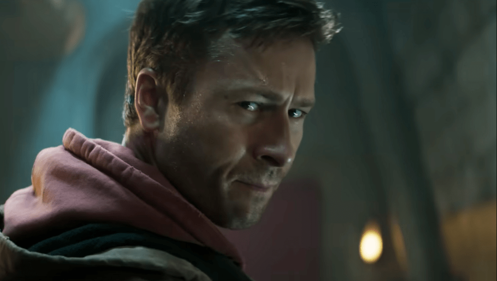 The big selling point of this movie though is to see Glen Powell as a lead action hero, something that he hasn’t had the chance to be aside from a fairly forgettable supporting turn in The Expendables 3. I think he is able to prove his chops very well here as he is able to bring Ben’s righteous anger to life in a way that is very over the top, but fits the mood that Wright is going for and matches the movie’s no hold barres approach to its messaging. It takes a bit to get used to this approach as admittedly the initial scenes of set up give off the feeling that he is trying too hard to be this immensely pissed off individual who yearns to go against the system, and I did begin to wonder if he was the right fit. However, I got onto his wavelength shortly thereafter as I appreciated just how upfront this character is about his frustrations and I think Powell does a good job in epitomizing the pent up anger so many people feel about what’s going on in this country. Not only that, though he doesn’t have as many opportunities to showcase his usual charisma given the kind of role this is, he still is able to inject some likability to this character through some well timed levity and his very personal motivation in trying to provide for his family that is solidly set up, even if I wish Jayme Lawson (who is quite good here) got more to do as his concerned wife, Sheila. His arc of learning what is going on and using his knowledge to fight for the good cause is well developed as we see him begin to realize through this game just how messed up the system truly is and Wright is able to get us into his mindset so that we understand the stress and fury that he feels. It’s a different kind of performance than I would associate with him, but its to his credit as an actor that I thought he pulled it off.